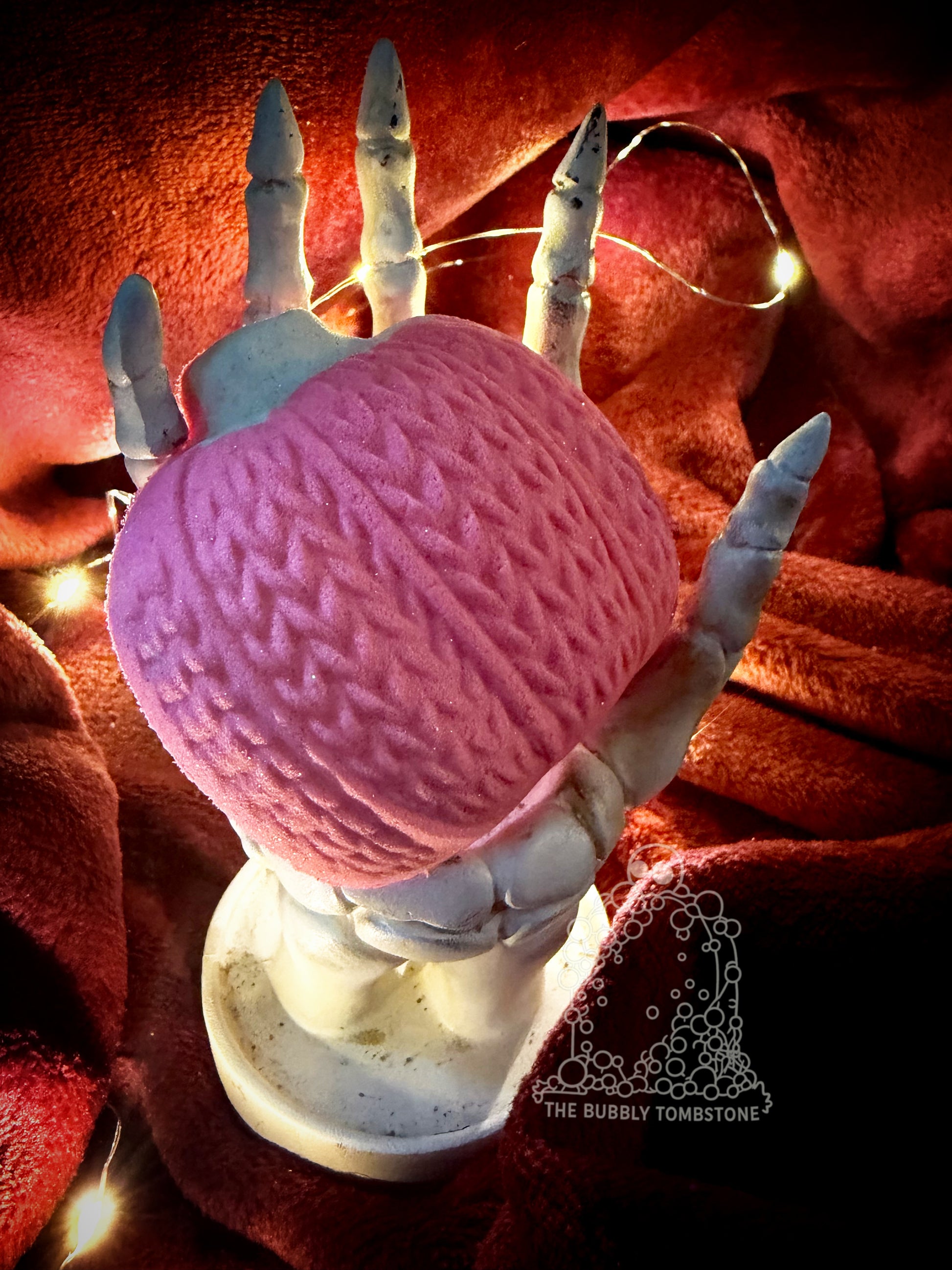 Handcrafted in small batches, Sweet Hex Pumpkin fizzes richly in the tub, releasing a darkly sweet blend of black raspberry and vanilla. Swirled in subtle red and bubblegum tones, then finished with gold and silver eco glitter, each pumpkin feels like a quiet love spell dropped into warm water.